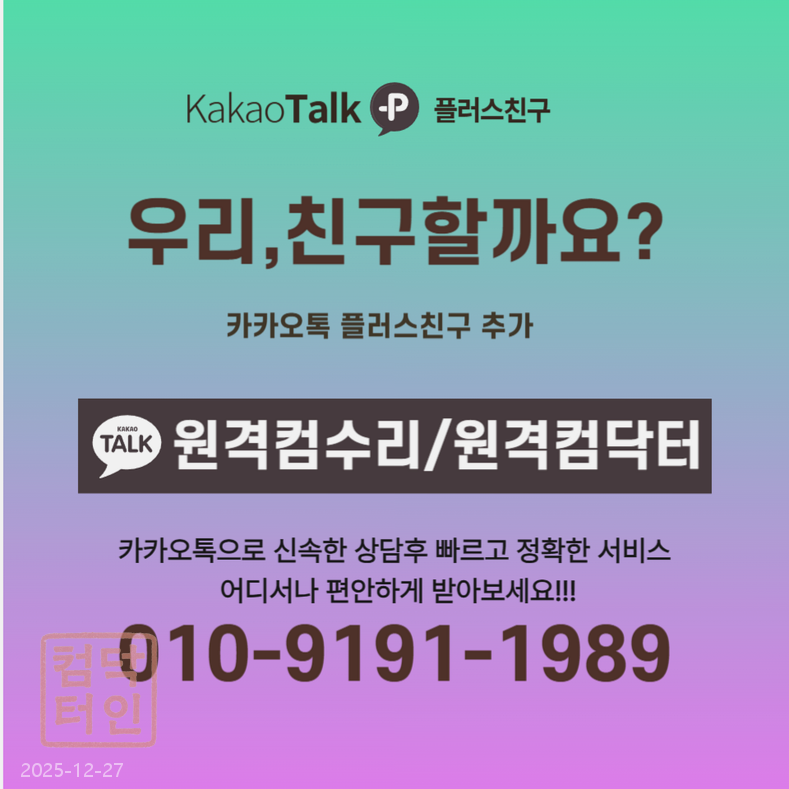 - 카카오톡 문의: 카카오채널 ID '원격컴수리' 또는 '원격컴닥터'