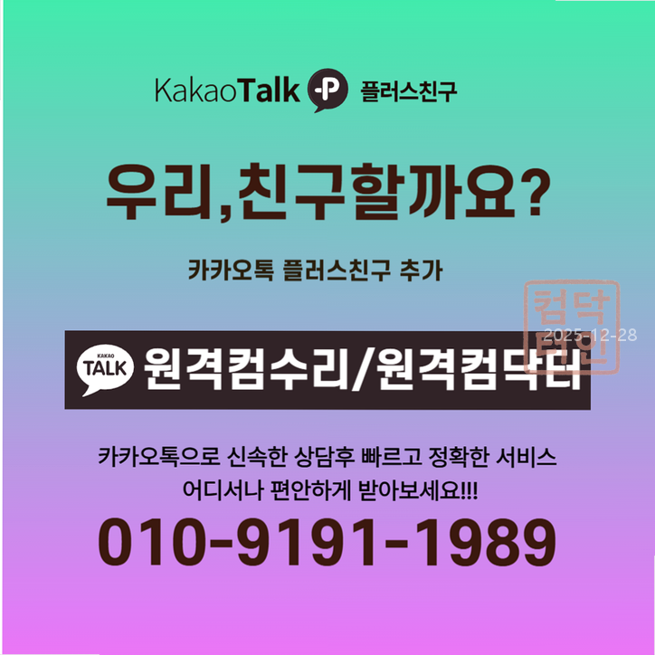 - 카카오채널: 원격컴수리 또는 원격컴닥터