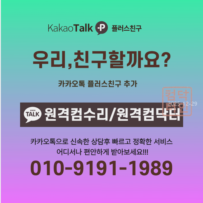 💬 카카오톡 문의: 카카오채널에서 '원격컴수리' 또는 '원격컴닥터' 검색