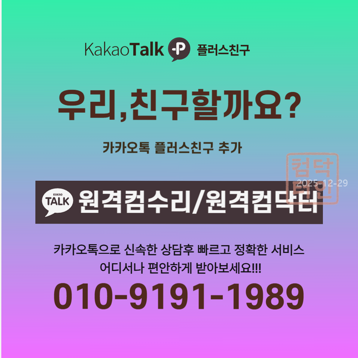 - 카카오톡 채널: '원격컴수리' 또는 '원격컴닥터' 검색