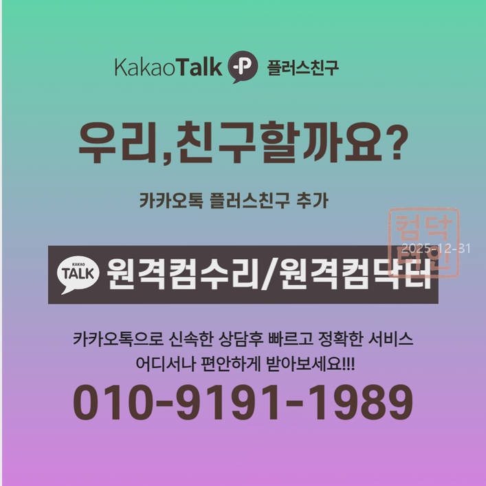 - 카카오톡 채널: '원격컴수리' 또는 '원격컴닥터' 검색