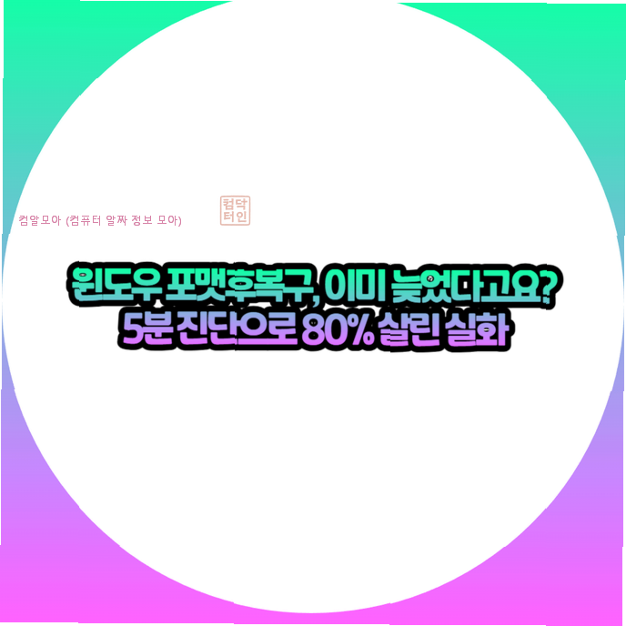 윈도우 포맷후복구, 이미 늦었다고요? 5분 진단으로 80% 살린 실화